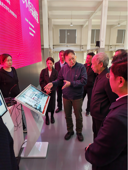 院长赵琳教授向代表团介绍这两款艺术结合人工智能的前沿科研成果。