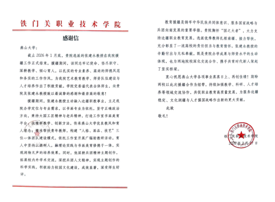张建永教授援疆工作圆满结束,铁门关职业技术学院发来感谢信,向赌博游戏app