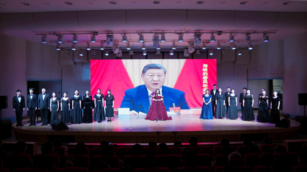 音乐会压轴环节,许英副教授重磅推出原创主旋律声乐作品《复兴颂》,将整场演出推向最高潮。该作品紧扣新时代主题,以习近平新时代中国特色社会主义思想为引领,立足党的二十大精神、中国式现代化、科技自立自强、共同富裕等时代核心议题,以真挚的歌词、深情的旋律、昂扬的基调,礼赞新时代波澜壮阔的发展历程,讴歌国家繁荣昌盛与民族复兴的光明前景,抒发对党和国家的无限热爱、对人民领袖的崇高敬意,充分彰显新时代高校文艺工作者“为时代立传、为人民放歌” 的使命担当。作品立意高远、情感饱满、感染力强,是党建引领与艺术创作深度融合的精品力作,引发全场听众强烈共鸣与热烈掌声。
