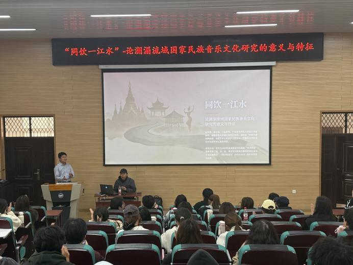 特邀湖南师范大学赵书峰教授在音乐馆B105举办以《“同饮一江水”:论澜湄流域国家民族音乐文化研究的意义与特征》为主题的区域国别音乐研究专题学术讲座。学院党委副书记宁岩鹏主持讲座,音乐系师生到场聆听,现场学术氛围浓厚。