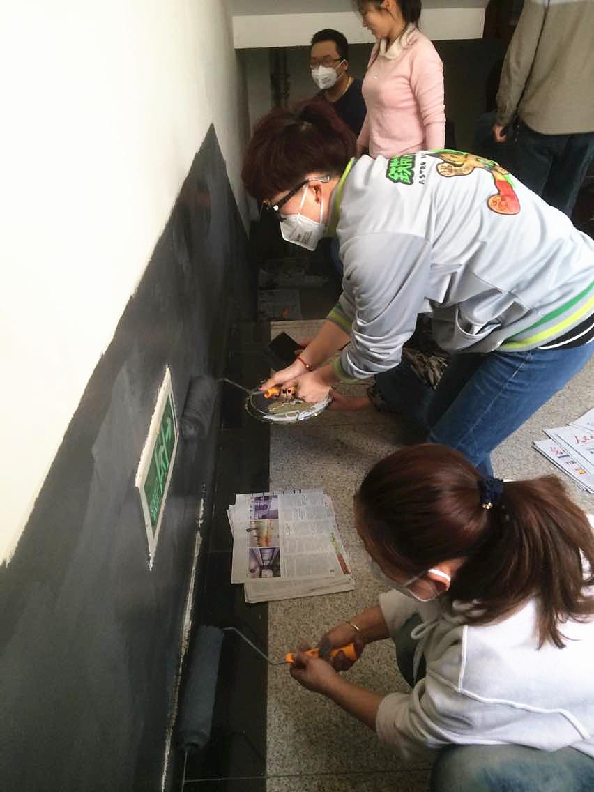 师生党员利用周四下午的思想政治学习时间,对院墙进行美化。在美化的过程中,师生分工合作,配合默契,细致认真,干劲十足。老师们先用砂纸将艺术楼和音乐馆走廊墙体上的污渍打磨掉,然后用灰色涂料粉刷了艺术楼C区楼梯间的墙裙。学生们在各位老师的带领下,凝聚力量,齐心协力将院内墙壁整理干净,不仅美化了教学环境,而且从中体会到了劳动带来的无限满足与快乐。虽然很累,但师生党员仍用饱满的热情去劳动,很快就让走廊的墙体又恢复了往日的洁白,让赌博游戏app