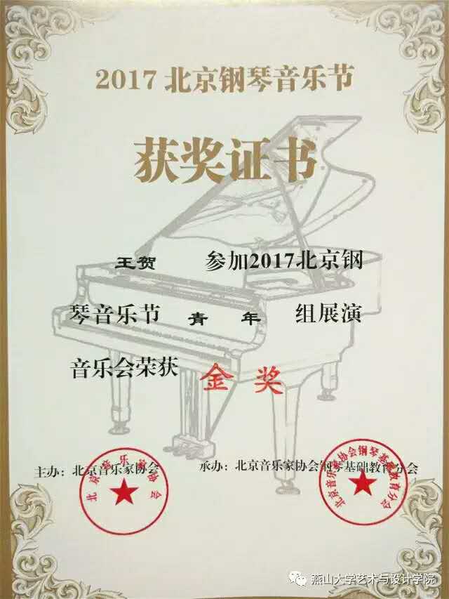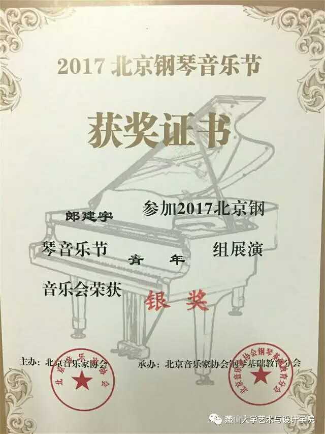 参加“2017北京钢琴音乐节”青年组的同学共计25人。在激烈的竞争中获得金奖,银奖的同学各一人,其余同学也发挥了良好的水平。