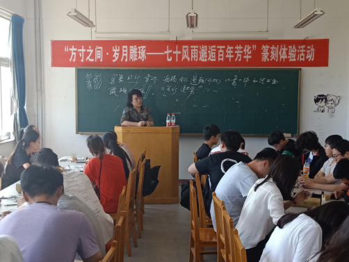 在美术馆A306举办了“方寸之间·岁月雕琢——七十风雨邂逅百年芳华”篆刻体验活动。