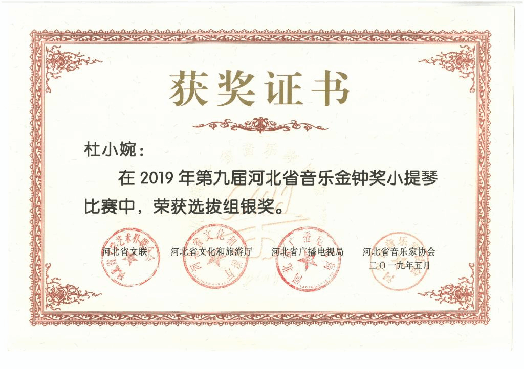 艺术学院杜小婉老师在小提琴组比赛中斩获银奖,并将于今年十月代表河北省参加全国金钟奖角逐。