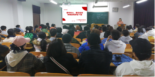 培训会上,冯丹红分别从学生干部的角色定位和素质要求展开讲解。要求学生干部做好老师与同学之间的“桥梁”、协调好工作与学习的关系,要多思考、多交流、多实践、多观察同学的问题与困难、多听取大家的意见。其次结合实际工作案例,教授学生干部在工作中如何提高工作效率、提升办公技能等。最后要求大家要增强安全意识,做好班级安全工作零汇报。