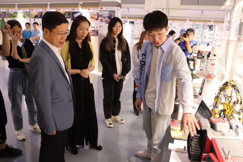 党委书记赵险峰于设计展开幕当日参观了设计展。在美术馆展厅,赵险峰详细了解了本届设计展的筹备情况,学生作品的创作情况,在展台旁认真观看设计作品并不时与师生交流,了解作品的创作理念和推广应用情况。赵险峰对学生作品给予高度评价并在留言墙签名留念。