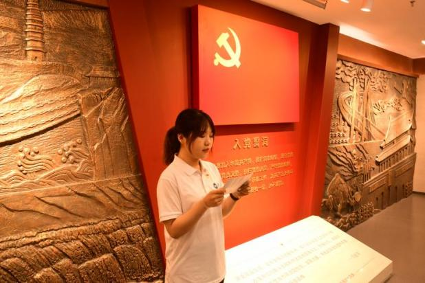 本科生第三党支部新党员、党员组织生活馆讲解员时歌带领新党员们参观赌博游戏app