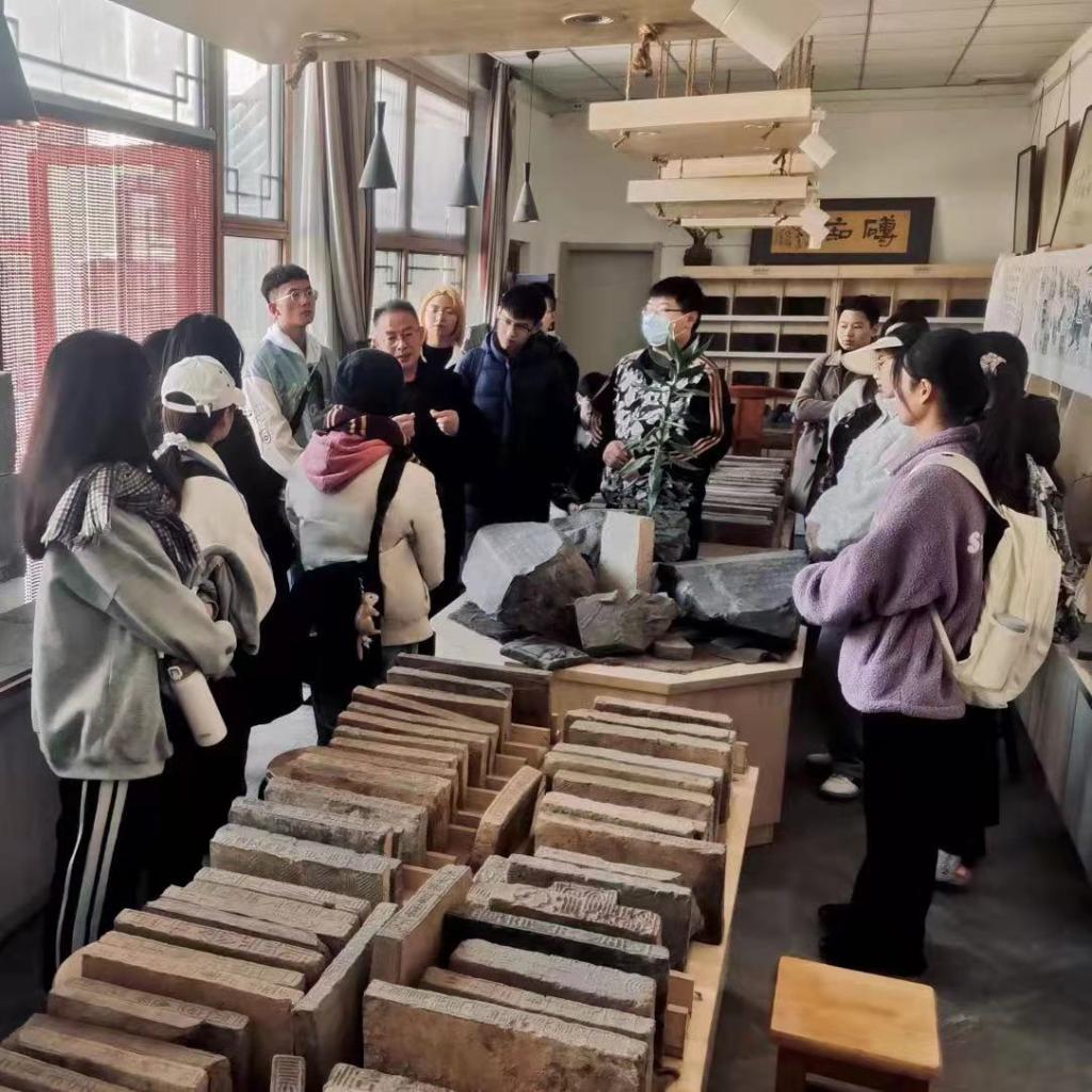 本次授课主要是以“汉珍斋非遗项目研习馆”馆藏古砖实物教学,引导学生系统的了解“金石学”中古砖的分类及古砖特有内容与文化内涵。系统的了解西汉至当代汉字进化过程及铭文书体的演变过程。考证《天发神谶碑》与魏晋悬针篆的联系,考证魏晋时期汉隶与楷书过度形成的“隶楷”书体,感悟古人语法的运用与现代词汇的联系,书法、篆刻与雕刻砖铭模版的联系。让铭文砖说话、引导学生从魏晋铭文砖中吸取养分,集字成书《隶楷》,填补书体空白。近距离的了解汉魏六朝的图腾与画像。