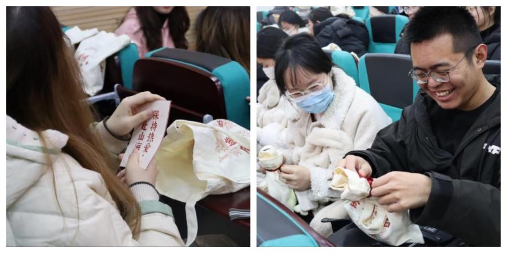 党委副书记宁岩鹏、辅导员冯丹红、丁旺龙前往协助布置会场;会上,敞开心扉和同学们进行谈心,交流备考经验,为同学们加油打气。宁岩鹏鼓励同学们放松心情,做好冲刺阶段的准备工作,以最佳的状态、满满的细心、耐心和信心完成研究生考试,预祝同学们取得好成绩。冯丹红温情关怀鼓励同学们坚持到底,并为同学们赠与了印有“考研必胜”字样的“福袋”。
