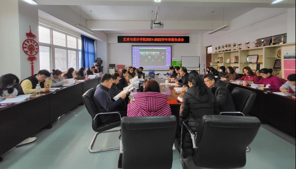 2021-2022学年寒假务虚会在美术馆C305召开,党委书记张文超,院长孙利,副院长赵琳、刘维尚,党委副书记宁岩鹏,院党委委员,科级秘书,系部中心主任、副主任、教研秘书,党支部书记,6个专项办公室负责人等42人参加会议,会议由院长孙利主持。
