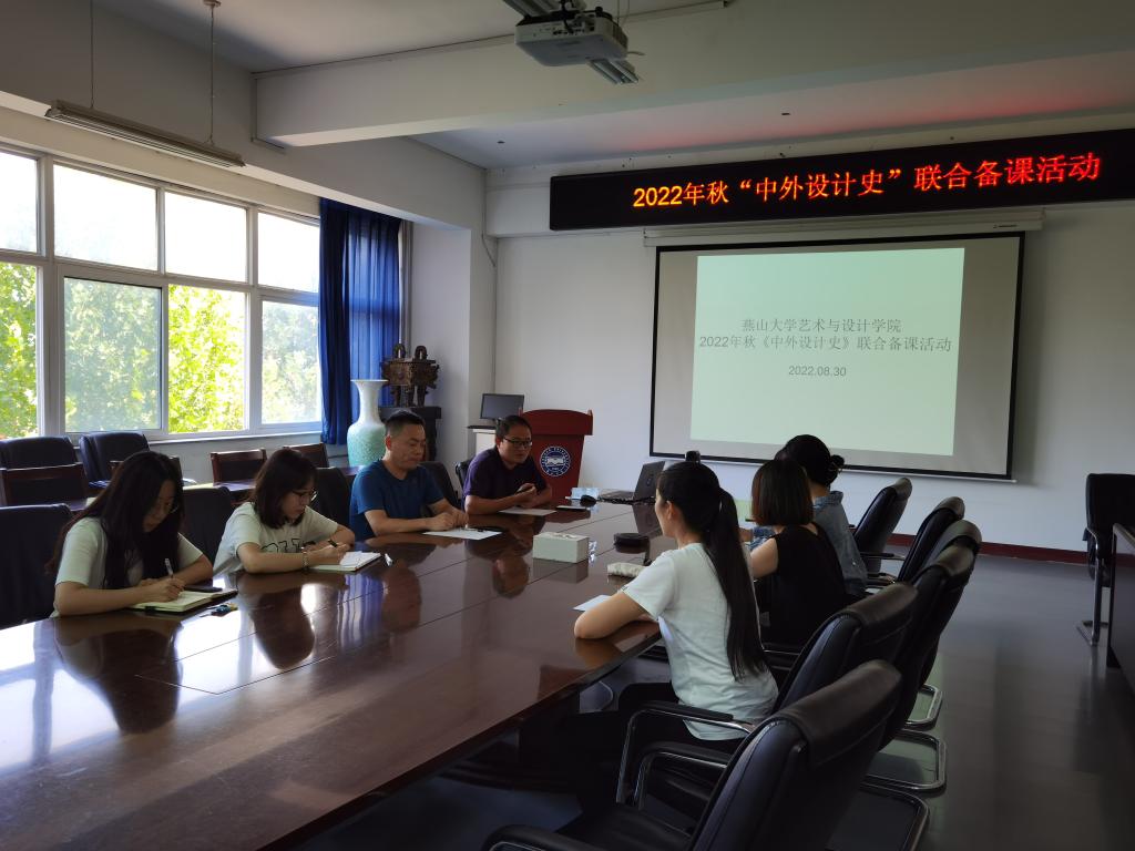 承担《中外设计史》课程的刘加全、王青田、贾晓璐、苗青、孙炳明、常鑫、张新佳、陈旭、陈玮晴等九位任课教师,在学院会议室进行了教学研讨集体备课活动。本次教学研讨活动由刘加全老师主持。