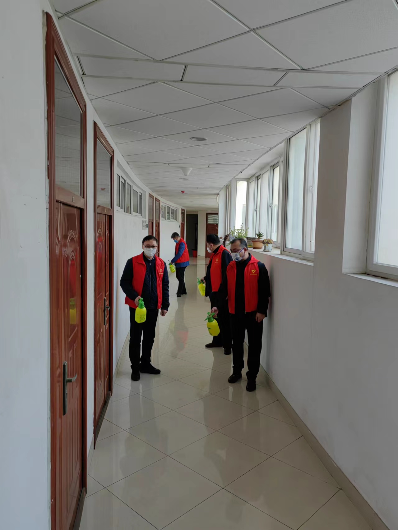 组织消杀,是切断病毒传播的最有效的途径。学院领导、教工党员来到专业教室和教师工作室,配比消毒液,手持喷壶对整体环境进行消杀,对卫生不到位、安全隐患问题等进行及时的整改提醒。在学院领导和党员教工的带动下,同学们也积极参与学雷锋志愿服务活动当中。学生党员和志愿者对宿舍、走廊及楼梯间等公共场所逐一实施消杀工作。在消杀过程中,志愿者们严格按照操作规范,对重点区域“实时消杀”。整个工作有序展开,在确保学生安全的基础上,最大程度的保障了工作效果。