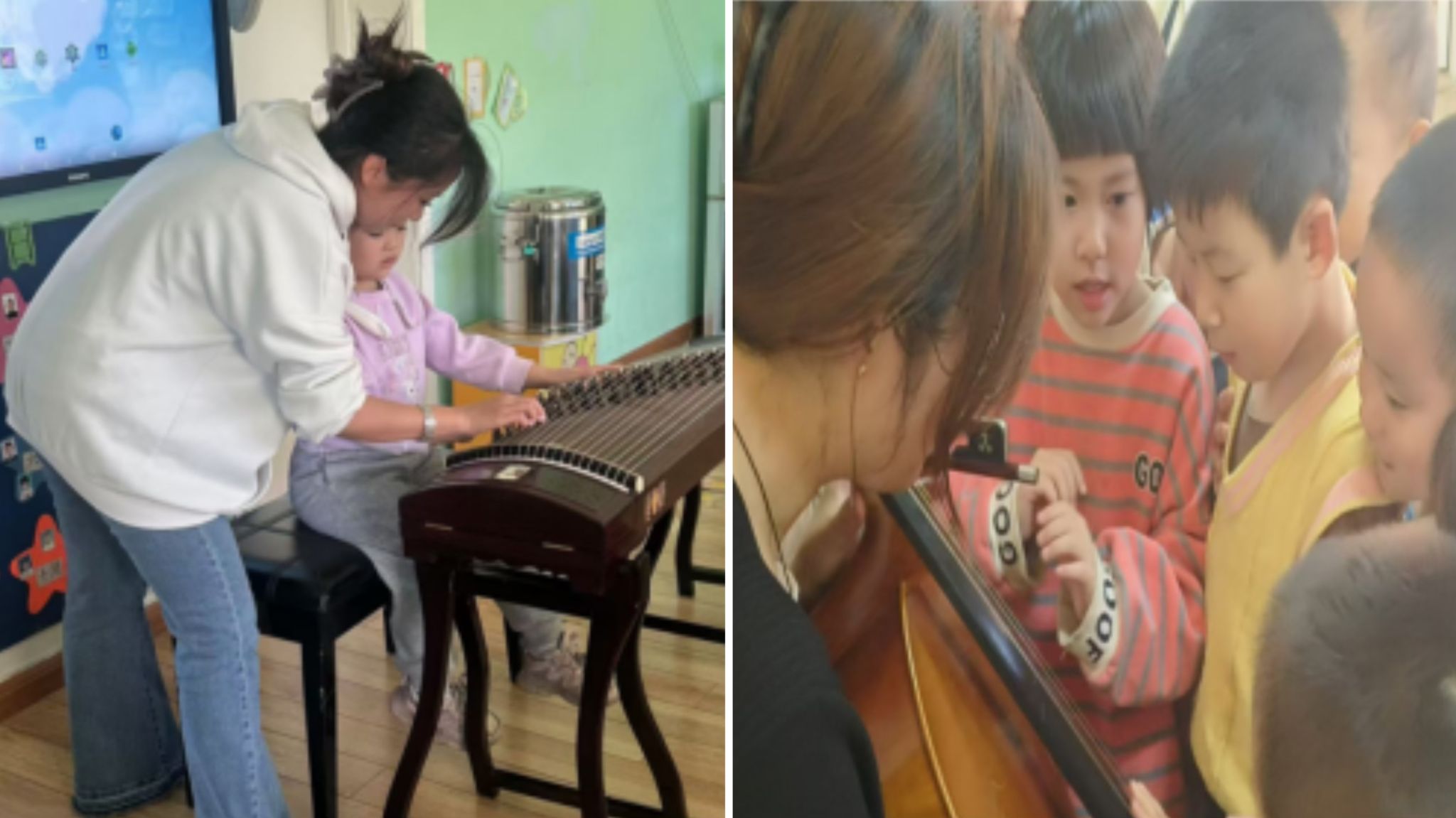 在展示和互动过程中,学生们辅导小朋友,让他们近距离的感受中华传统文化、民族乐器,使他们能够感受到音乐动带来的乐趣。教小朋友们仔细观察指法、耐心纠正细微的错误,帮助他们建立起对民族乐器的初步认识。同时,在互动中注重倾听孩子们的感受与疑问,用简单易懂的语言解答他们的困惑,激发他们的学习兴趣和动力。