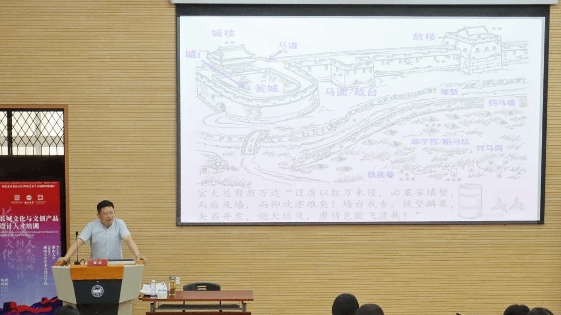 李哲教授聚焦于长城全线数字化支撑的在馆、在地、在线阐释,提出通过数字化手段实现长城全线的在馆、在地、在线展示和传播。他还讨论了在线平台在推广长城文化中的作用,指出通过互联网可以突破地理限制,让全球观众都能接触和学习长城文化。赵杰教授的讲解不仅展示了数字化技术在文化遗产保护和传播中的潜力,也为文创产品设计提供了新的方向,鼓励学员们探索如何将数字化长城元素融入设计中,创造出既有教育意义又具市场价值的产品。通过这次授课,学员们对长城文化的数字化阐释有了更深刻的理解,为他们未来的设计工作注入了新的灵感和创新思路。