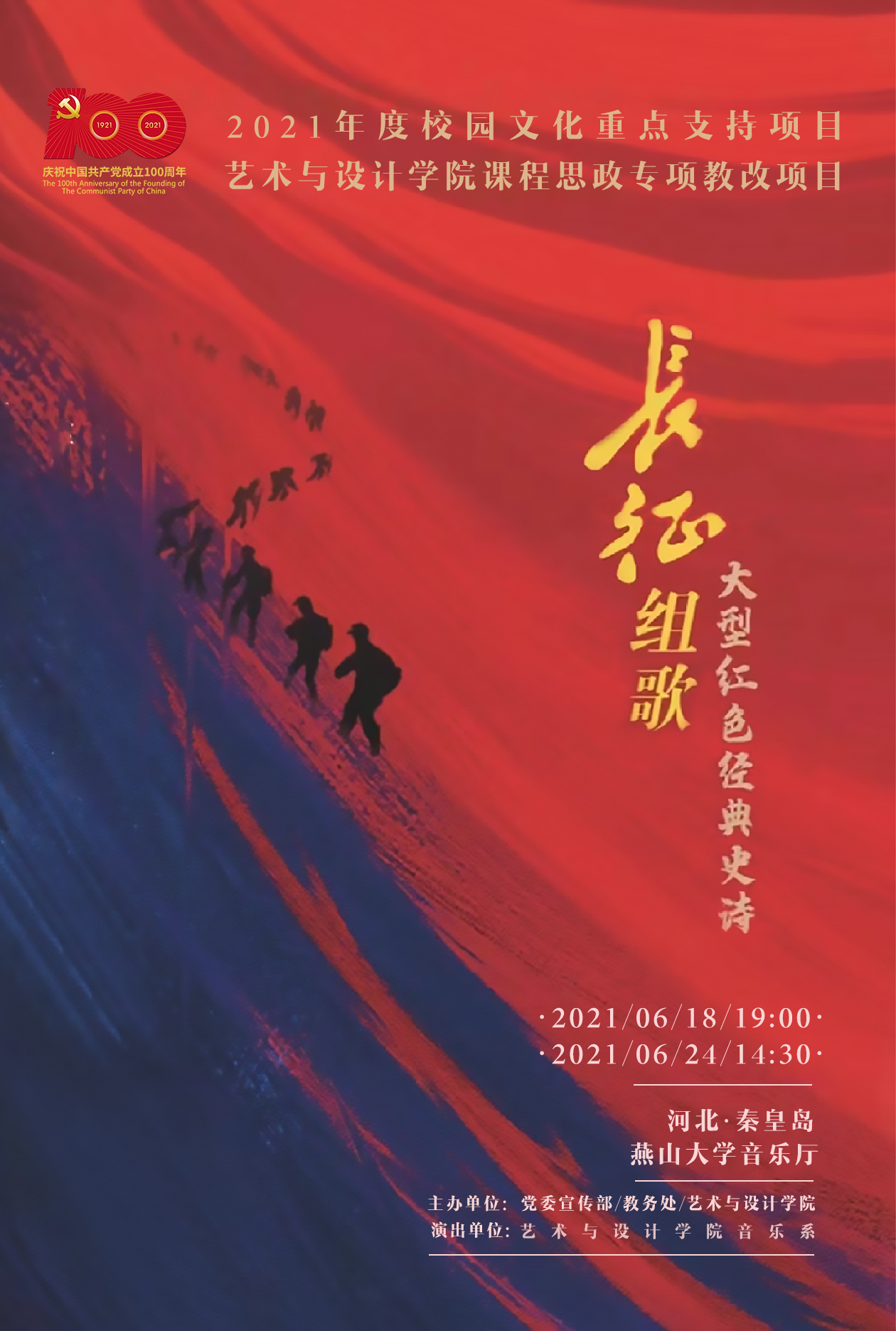 音乐系承办的大型红色经典史诗《长征组歌》将于6月18日(周五)晚19:30和6月24日(周四)下午14:30在赌博游戏app