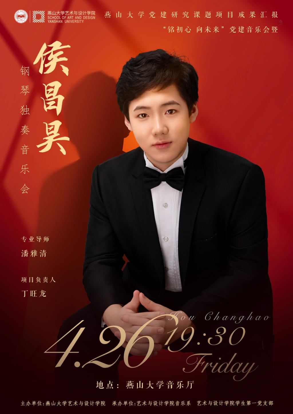 将于4月26日19:30,举行“铭初心 向未来”党建音乐会暨侯昌昊钢琴独奏音乐会。本场音乐会亦为赌博游戏app